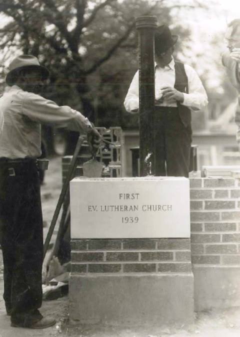 By mid-1937, financial conditions and congregation size had improved enough to consider a permanent church building. On July 11, 1937 a building committee was elected to explore the feasibility and to develop preliminary plans for the new building. Once decided upon, progress was rapid. A building proposal was approved in January of 1938. By January 1939, adequate funds were pledged. An architect, Thorwald Thorsen of Forest City, was hired. Construction contracts were signed April 17, 1939 and the contractor started work on May 19, 1939. The cornerstone laying ceremony was held on May 14, 1939. The church dedication service was held on October 22, 1939.